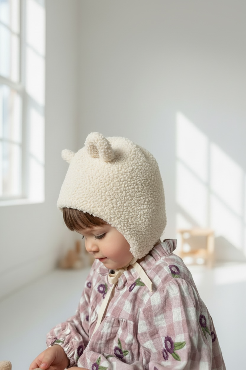 Čepička "Lune" je jemný a hřejivý kousek z měkkého teddy materiálu s hebkou medvídkovou strukturou. Působí něžně a čistě, zároveň krásně doplní každý outfit během chladnějších dnů.