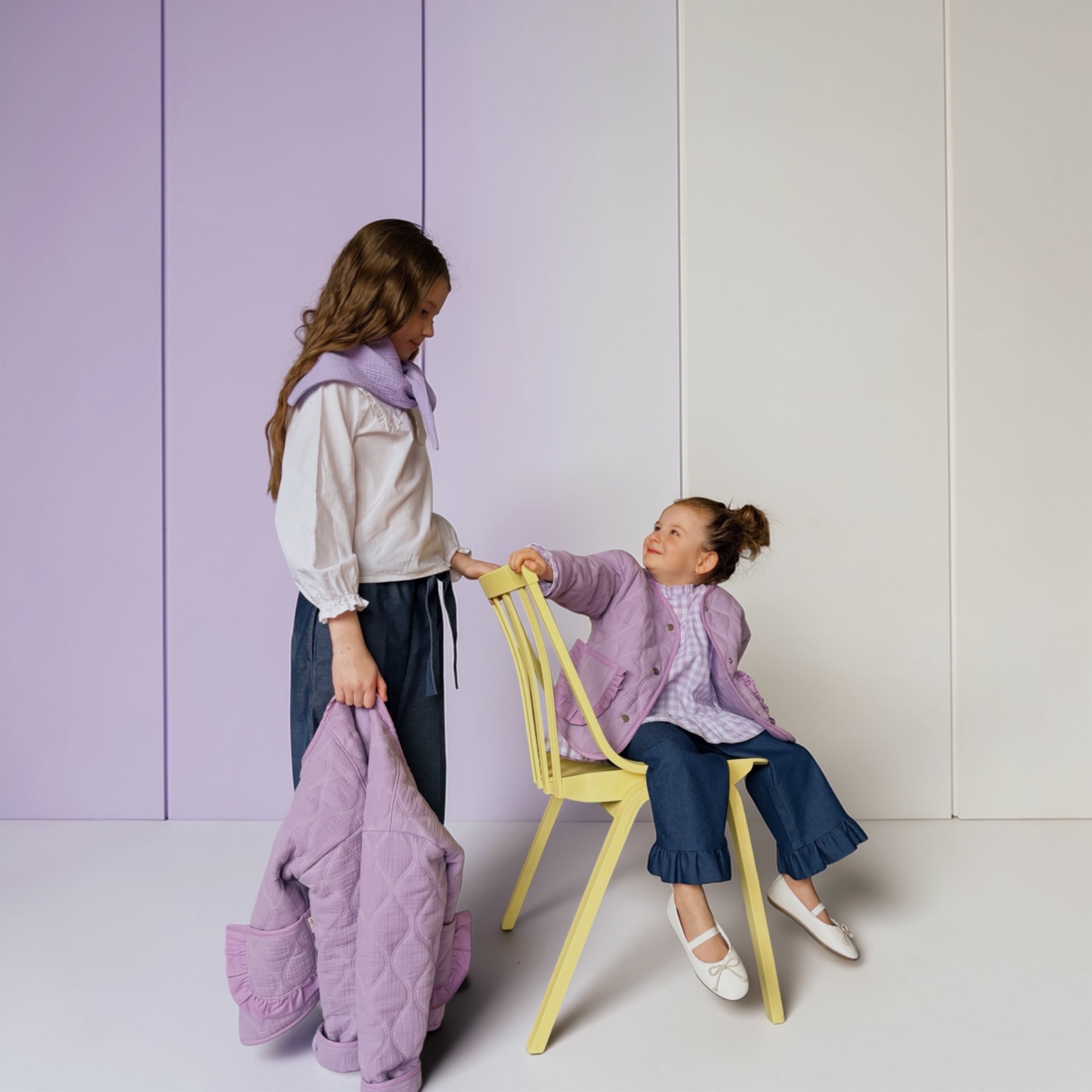 Kabátek "Chloé Mini" je hravější a jemnější varianta oblíbeného střihu, navržená pro malé parádnice. Díky pohodlnému střihu se snadno vrství a poskytuje dostatek volnosti při každodenním nošení.