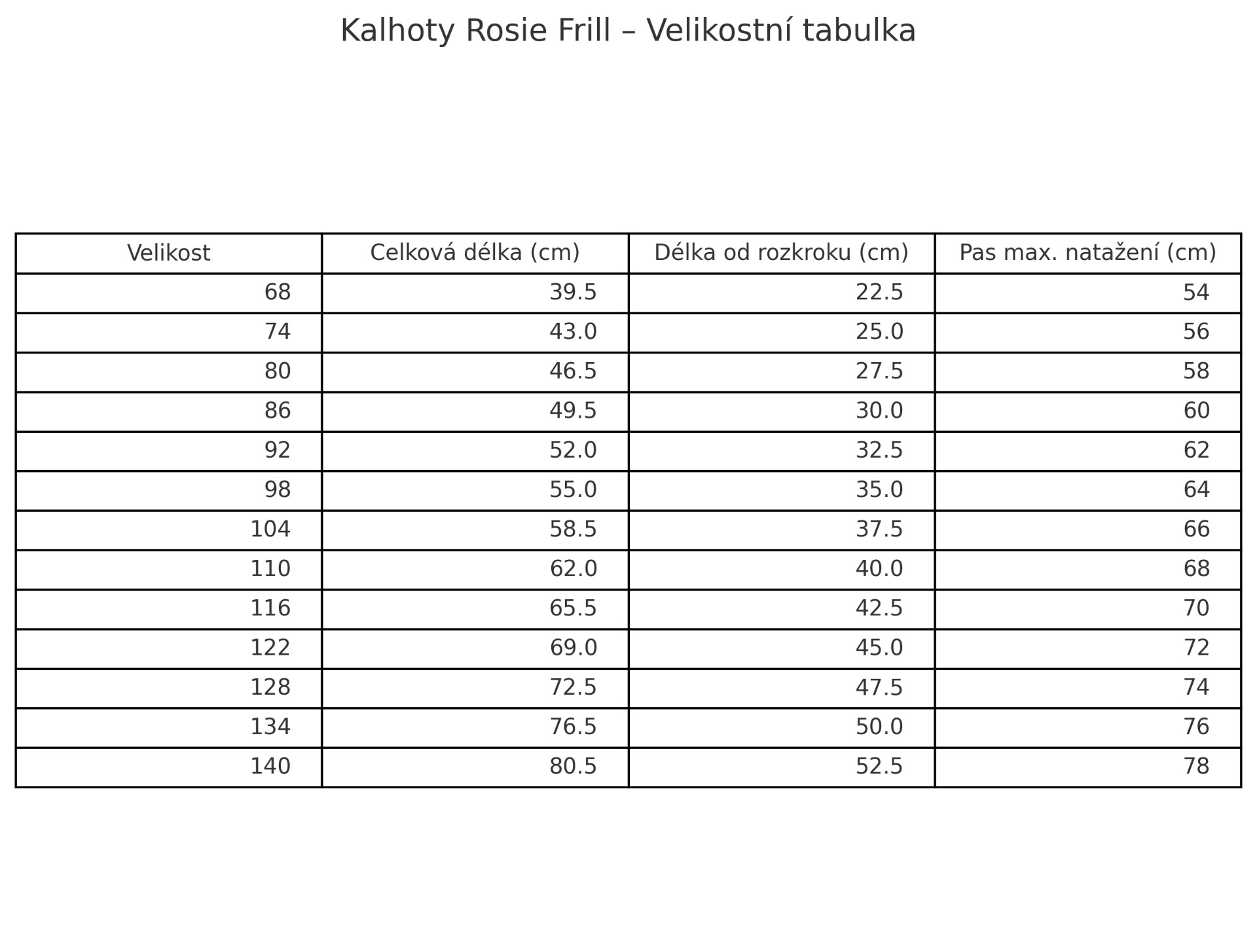 Pohodlné, slušivé a s jemným volánkem, který dodá každému outfitu hravý a elegantní dotek. Kalhoty Rosie Frill mají volnější rovný střih, pružný pas do gumy a maximální komfort při nošení — takže jsou ideální do školky, školy i na víkendové výlety.