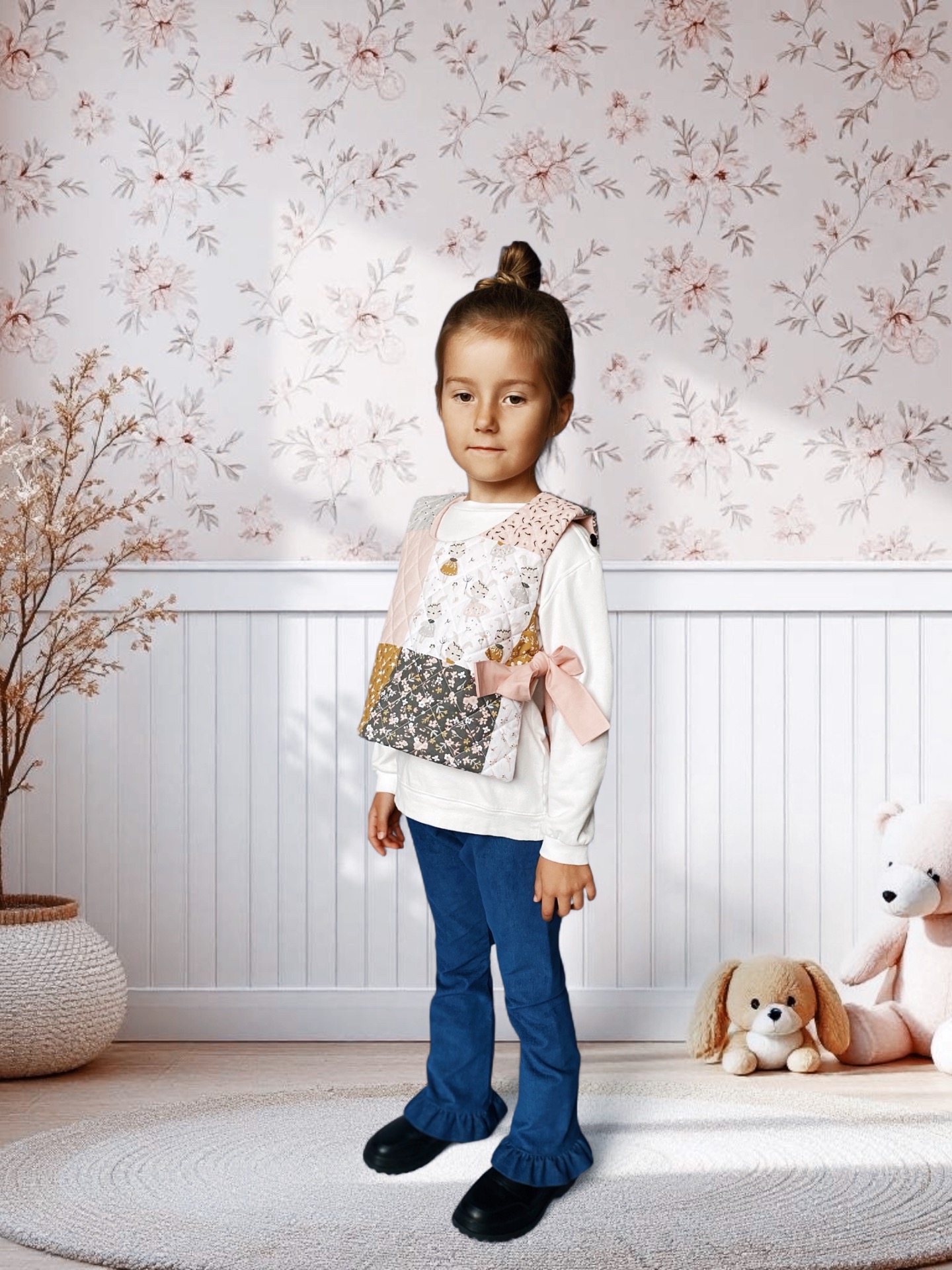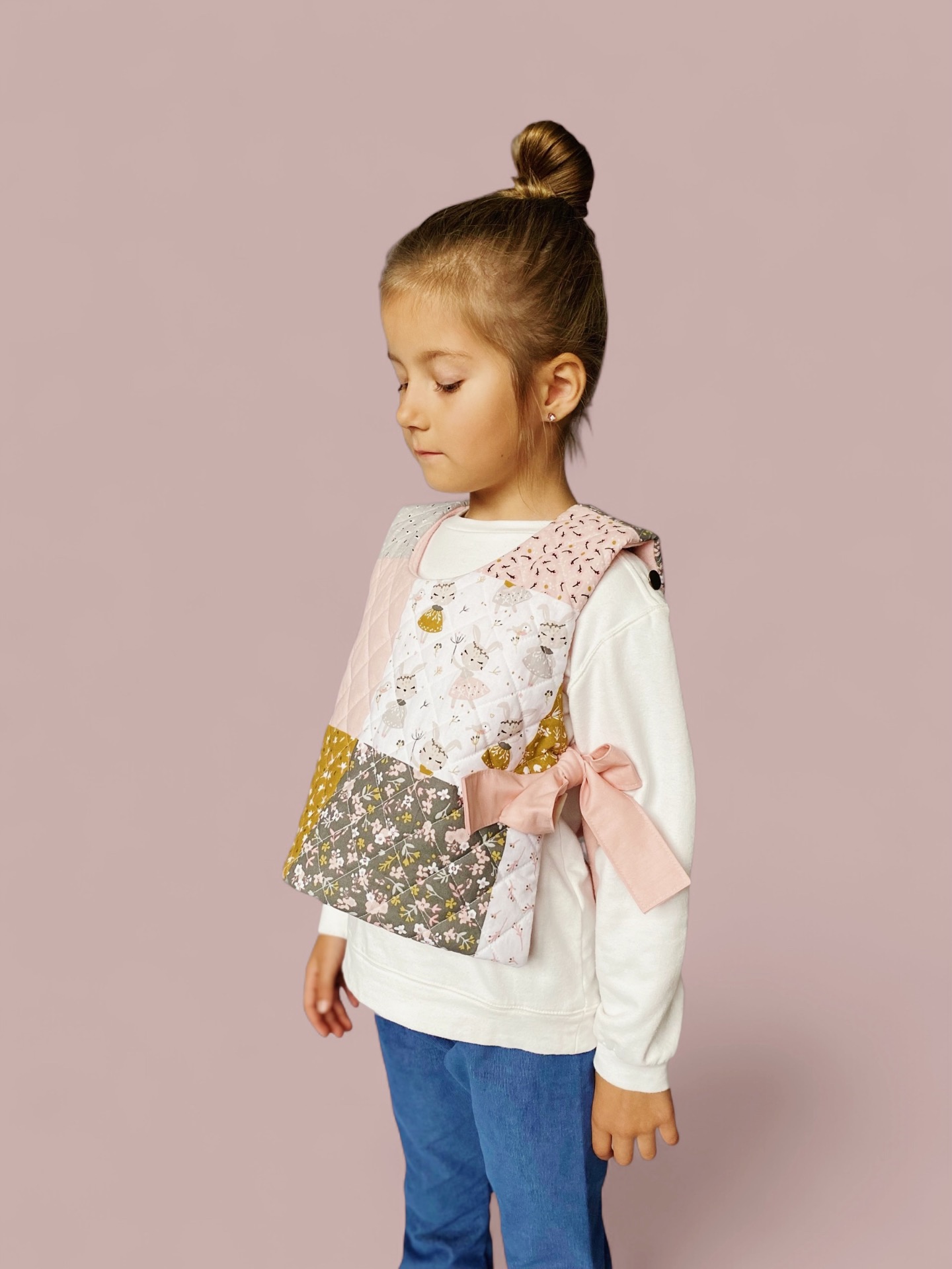 "Sofi" je vesta, která obejme jako měkké pohlazení. Hravý patchworkový vzhled jí dodává kouzlo, které rozzáří každý outfit. Díky lehkosti se krásně vrství a stane se oblíbeným společníkem na procházky, do školky i na chvíle pohody doma.